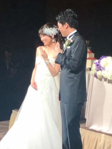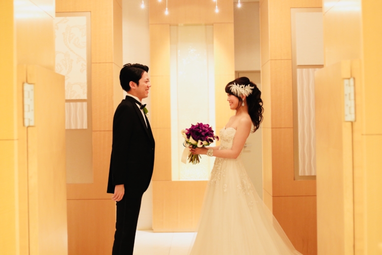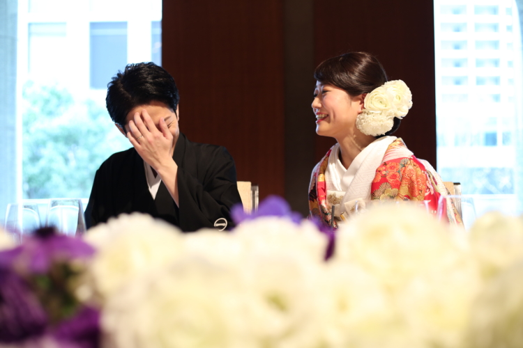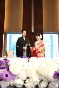 厳かな築地本願寺での挙式ではお二人で誓いの言葉を声を揃えてお読みになったそう。