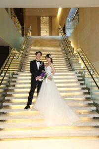 2日間に分けて行われたWeddingでは、挙式:築地本願寺では【つつましさ】を、披露宴:コンラッド東京では【華やかさ】のギャップを感じてもらえるように演出。ゲストへのおもてなしにもこだわって、お料理やギフトにもこだわりが!