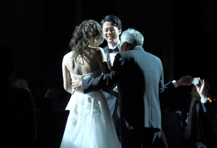 号泣したお父様がなかなか、新郎様に手を渡してくれず会場中の涙を誘ったシーンに!