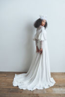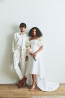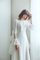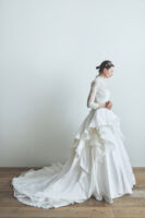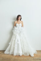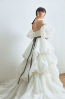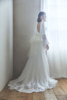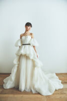 今までのituwaらしい、シンプルで余白を残したデザインや光を取り込むクリアなドレスに加え、イギリス製のボタニカルモチーフを使った精緻な刺繍、新たに加わった女性デザイナー森理加によるリアルクローズに細やかなディテールが煌めくドレス、トップスやトレーンに数パターンを用意することで、さまざまなスタイルのドレスが完成するトランスフォームなドレス。