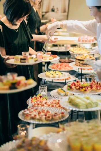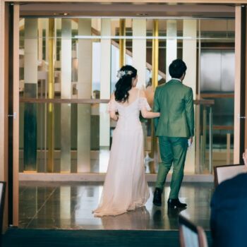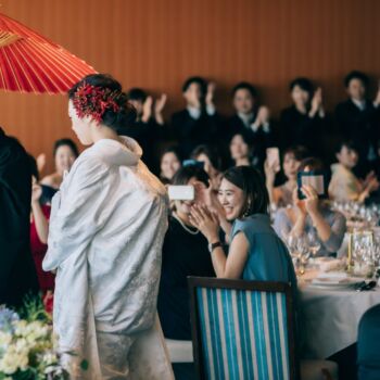 とにかく、ゲストの皆さんと楽しい時間を過ごしたい、和やかで気取らない。そんな中でもおもてなしには力をいれられたそう。お料理も一品ずつ吟味されコースを作り上げたり、デザートはブッフェ形式で提供する、また新婦様の出身地の日本酒を使った “日本酒Bar” をオープンしたり、デザートワインはご新郎様の出身地のワインをご用意されるなどお二人らしさプラス皆様に楽しんでもらえる工夫を凝らしました。