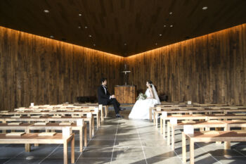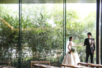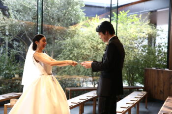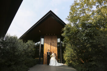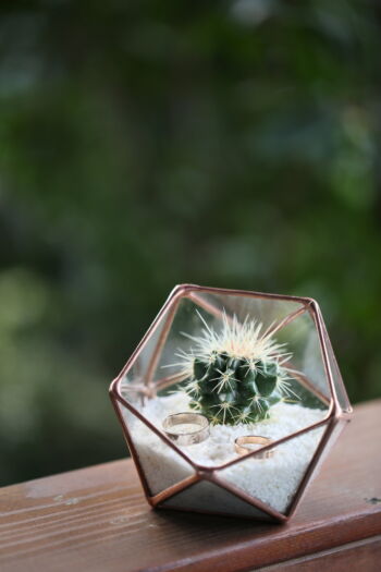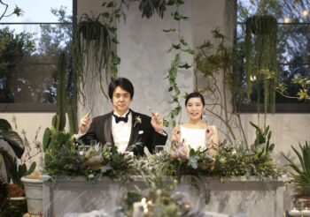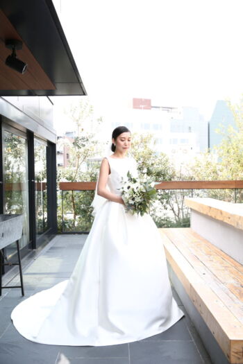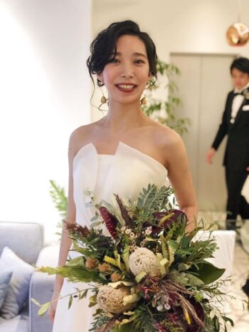 大好きなサボテン(カクタス)をメインにシンプルなコーディネートで統一されたお二人。おしゃれなコーディネートがより引き立つ会場は【TRUNK (HOTEL)】。チャペルがウッドベースで緑が多いという点もお気に入り!ドレスやアイテムもシンプルながらもこだわりが伝わるセンス抜群なWedding。