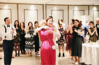 文化の違いや言葉の壁は一瞬では乗り越えられないけれど、お二人の結婚式はそれを跳ねのけてしまうくらい、アメリカからのゲストも日本のゲストも居心地の良い楽しい時間だったのではとコメントやたくさんの笑顔のお写真から感じました。それは、準備の時にそれぞれのウエディングをしっかりリサーチして、お二人で相談して、カタチにして、というお二人の努力のたまものだと思います。お二人にとってもゲストの方々にとっても、結婚式がお互いのスタイルを知るきっかけになったというのもとても素敵ですね♡