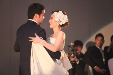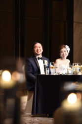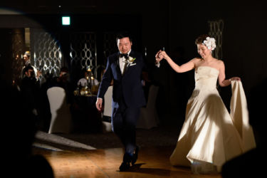 「日米融合のダンスパーティー」をテーマにしたお二人。その理由はゲストの約三分の一はアメリカからのゲストだから。言葉がわからなくても、共通で楽しめる音楽やアイテム、演出などに工夫をし、アメリカのウエディングの当たり前と日本のウエディングの当たり前を、うまくメリハリをつけて表現!