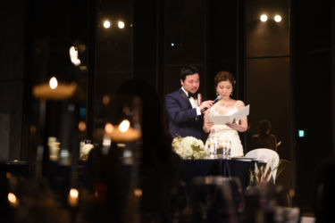 お二人のイメージテーマに対応してくださる式場探しにとても苦戦されたそう。(なんと16件も見学に!)そしてご新郎様に日本の結婚式を理解してもらうことが大変だったと、教えてくださいました。米国式を取り入れるとは言っても、日本人のゲストの方が多いため、締めるところは締め、ある程度の流れは日本式にすることに。ご新郎様の当たり前(米国)とご新婦様の当たり前(日本)をうまく組み合わせ、またそれを式場に伝えて理解してもらうこと…この作業にも苦労したそうです。大変だったけれどうまく役割分担できたのは、お二人とも創作関係は得意だったため、ペーパーアイテムはご新婦様が作り、動画関係はご新郎様が作成。もともと趣味で動画の撮影や編集などが好きで得意なご新郎様は、かなりクオリティの高い仕上がりに、ゲストにも大好評だったそう♪