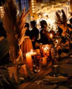 お家にいるような空間作りをイメージした装飾。たくさんのパンパスグラスとキャンドルの光が優しい雰囲気に。