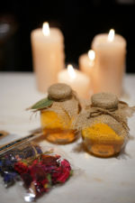 ▶︎リングピロー ▶︎プチギフト:「マルティネリ(ギフトの定番!アップルジュース)」のビンに入れる「ミニブーケ型 ポプリ 」▶︎お車代の袋 ▶︎栓抜きのエスコートカード ▶︎ブーケ ▶︎ウエルカムボードなど、あたたかさを感じるテーマにぴったりなDIYを多数♡ 栓抜きのエスコードカードは乾杯が「瓶で」だったため!