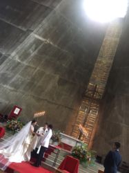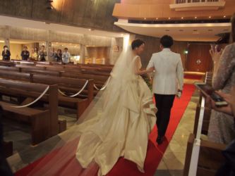 教会で式を挙げたい!と探された "東京カテドラル関口教会" 選んだ決め手は圧巻の高い天井と重厚感のある厳かな雰囲気。披露宴会場 "グランドハイアット東京 フレンチキッチン" は美味しいお料理とお洒落な雰囲気とレストラン内にあるキャットウォークが決め手に!入退場は注目を浴びて盛り上げること間違いなしの演出が可能♡