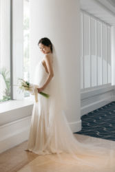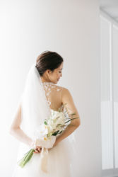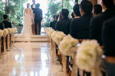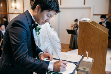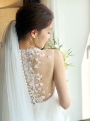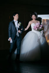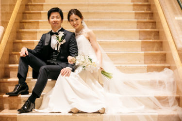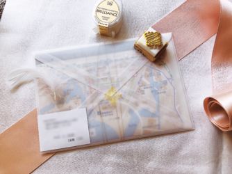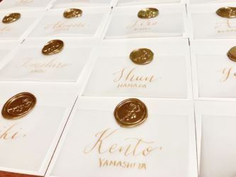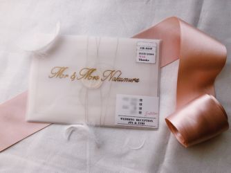 ペーパーアイテムのDIYにもこだわり、特にゲストに最初に届く招待状は貰ってワクワクするような海外っぽさを取り入れ、紐で巻いたりシーリングスタンプを使用!席次表や席札もDIY!シンプルでもポイントのあるテイストがお好みでドレスも同じテイストのものを選び、世界観を統一♡節約の為にDIYを、というお話でしたがどれもクオリティーが高く手作りには思えない!