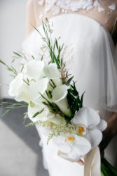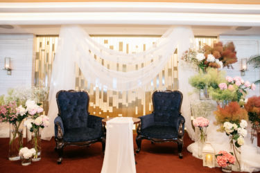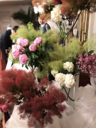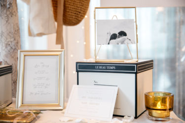 雰囲気に合わせて、セレクトブランドのお店をイメージ!してアイテムづくり・空間づくりをされたお二人。ウェルカムスペースはブティック風にハンガーラックを使用したり、高砂や卓花はパリのお花屋さんのように同種の花を花器に投げ込みのスタイルに、ソファの高砂では一人掛けソファを2つ並べるなど、こだわり満載♡これはきちんとイメージ作りをしていないとなかなか作り込めないのでさすがです!