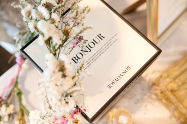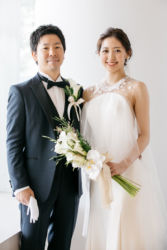 テーマに沿ったデザインにするためにイメージされたのは“ セレクトブランドショップ ”!ハイセンスな上に統一感があっておしゃれなWeddingに。サブカラーにはニュアンスピンクをプラスして主張しすぎない差し色でやわらかい全体の印象が完成。また、ビジュアルだけでなくお料理にもこだわった素敵な1日に。