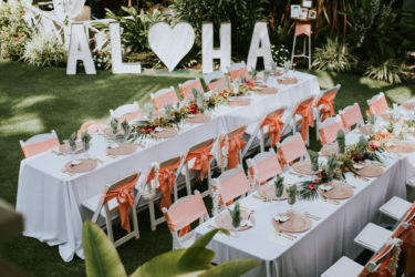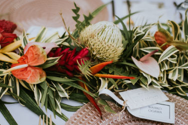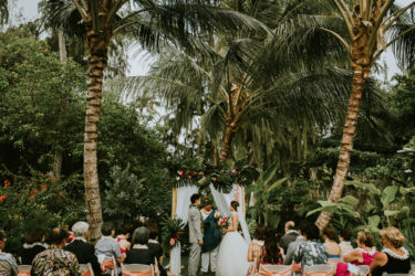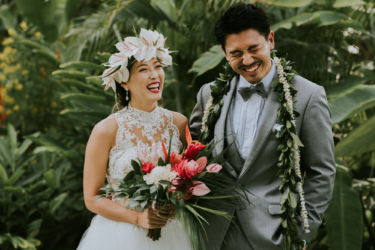 せっかくのハワイウェディングということでご新婦様のイメージは「トロピカルなお花を使いたい」ということ。そこで、ハワイならではのお花を使い、モダンなアレンジが特徴のOcean Dreamerにお願いしたそうです!Ocean Dreamerは大人気で、なかなか連絡がつかないそうですが、「結果的に頼んで良かった!」とご新婦様。