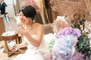 アンティークとシンプルをバランス良く取り入れたパーティー。シンプルを意識すると少し寂しくなってしまうことが多いですが紫陽花カラーをテーマにされたことで、シンプルな中に鮮やかさを感じるまとまりのある素敵な1日になったようです。また、お料理とお花以外はご自身で手作りとのことですが、手作りとは思えないクオリティーでゲストだったら思わず持ち帰りたくなるアイテムばかり!