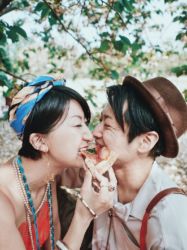 @maoizm_bridal ) さんに撮影を依頼されたお二人。撮影した場所はなんと、歌舞伎町!唯一無二の写真撮影を、と打ち合わせをされて思い浮かんだ場所だそう。というのも、20歳に上京されネイリストとして新宿でずっとお仕事をされてきたご新婦様。楽しさ嬉しさ苦しさ、社会人としてたくさんの気持ちを味わった思い出の地でお写真を残したいというのが決め手だったそうです。しかし、@maoizm_bridalさんとお二人の世界観からか、都心の街中とは思えないおしゃれなクオリティ♡