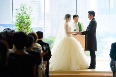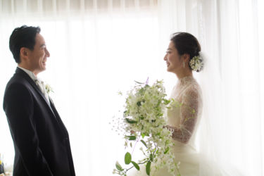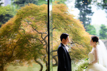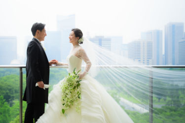 初夏の時期に綺麗な緑が見えるパレスホテルをお選びになったお二人。